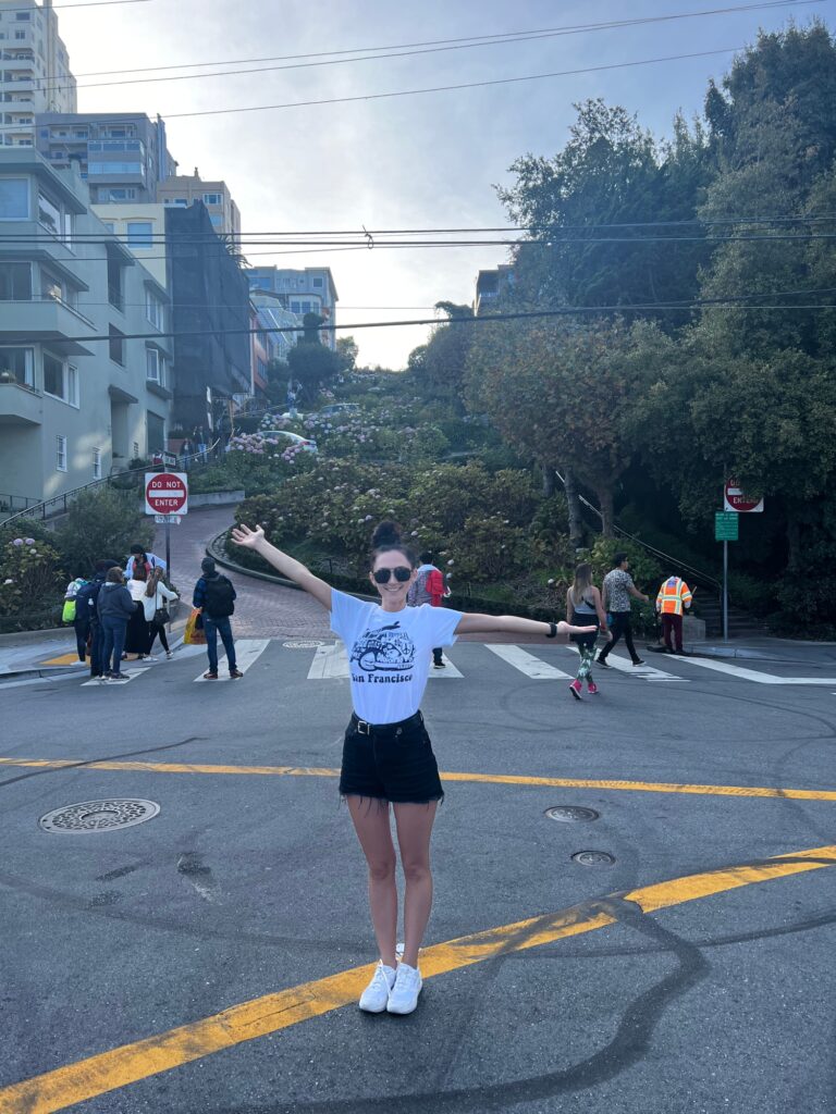 San Francisco jest zbudowane na 43 wzgórzach, co sprawia, że ulice są często strome i kręte. Zobaczyliśmy Lombard Street. Ulicę znaną z jednego, bardzo krętego odcinka, który często nazywany jest “najbardziej krętą ulicą świata”!